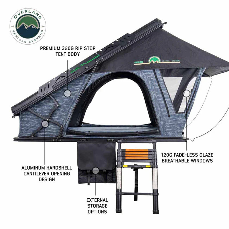 Introducing the Overland Vehicle Systems XD Lohtse Clamshell Aluminum Hard Shell Roof Top Tent – a revolution in rooftop camping that combines cutting-edge design and unmatched versatility. This exceptional tent is engineered to redefine your outdoor adventures, providing a comfortable and convenient home on the road.